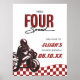 Sua cara precisa de 4 velocidades! Comemore seus filhos no 4º aniversário com nosso sinal de boas-vindas de aniversário vermelho, preto e branco do Speedster.