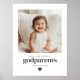 Um presente minimalista e moderno para os Padrinhos, apresentando a foto escolhida, texto personalizado abaixo, incluindo o título e a data em que se tornaram Padrinhos, e um detalhe delicado de coração na parte inferior. Uma peça atemporal para marcar um momento verdadeiramente especial.
