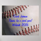 Coloque toda a equipe nele! Muito espaço para todos os jogadores assinarem! Obrigado o treinador para uma temporada de excelente! Um beisebol branco, sujo de ser jogado, com costura desbotada mas ainda vermelha. Presente perfeito no fim da temporada! Mude o texto para a sua liga ou equipe!