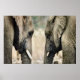 Bela arte de dois amantes de elefantes olhando nos olhos um do outro. Presentes maravilhosos para qualquer amante de animais selvagens. Linda decoração de parede para adicionar um toque único à decoração da sua casa.