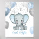 Avise aos seus hóspedes onde colocar suas cartas e presentes com este adorável poster chá de fraldas com elefante de bebê azul e cinza com balões e confete. Facilmente personalizado para seu evento clicando em "personalizar".