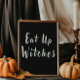 Arrumem a festa do Halloween ou a desgraça da solteira com este ousado cartaz de mesa "Comam Bruxas"! Apresentando um texto branco nítido sobre fundo preto, é a adição perfeita à sua mesa de lanche, espalhamento de buffet ou estação de sobremesa. Quer você esteja hospedando um chá de panela pervertido ou uma festa de janto assombrada, este sinal de na moda traz o tema juntos. Conclua o olhar com placas de coordenação e produtos de festa da bruxa que está ganhando a suíte de hitch — incluindo sinais de bebida, favores e etiquetas personalizadas!