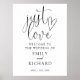 Este sinal de boas-vindas ao casamento de guião elegante preto e branco pode ser personalizado com todas as suas informações especiais sobre o dia do casamento. Projetado por Thisnotme©