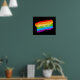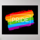 Este trabalho de arte apresenta um arco-íris colorido com a palavra Orgulho.