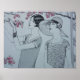 impressão de vintage de duas meninas que gostam do primavera floresce
