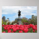Tulips florescem em frente à estátua George Washington no Jardim Público de Boston.