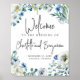 Poster Primavera Floral Chic Azul Bem-vindo ao Nosso Casa