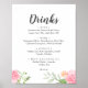 Poster Primavera Peony Wedding Drinks - Sinal de Menu