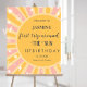 Bem-vindos aos seus convidados com a nossa primeira viagem à volta do Sun Retro Boho Sun Poster de Boho Bem-vindo. Apresentando um charmoso design do sol retrógrado e detalhes inspirados em boho, este poster cria uma atmosfera quente e convidativa para a sua primeira festa de aniversário. Perfeito por dar o tom para uma celebração alegre!