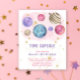 WATERCOLOR Espaço de galáxias mágicas, convite de aniversário. Planetas e estrelas cor-de-rosa, roxo, dourado.