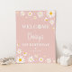 Este sinal de boas-vindas apresenta flores brancas boho margaridas sobre um fundo cor-de-rosa pincelado e suave, criando um design delicado mas sofisticado que é perfeito para acolher seus convidados. Quer você esteja hospedando um aniversário inspirado na boêmia, ou simplesmente procurando um na moda e um design elegante, este sinal de decoração certamente impressionará seus convidados. Clique no botão "personalizar mais" se quiser reorganizar e formatar o estilo e a posição do texto.