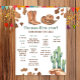 Encoste-se! Este design de aquarela. Este design apresenta cores neutras modernas em uma aplicação de aquarela. Design em impressão de vaca, chapéu de cowboy, cacto do deserto, botas de cowboy.