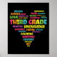 Esta engraçada design da 3ª série da escola lê "nuvem de palavras de professores do 3º ano". Foi criado com amor e vocês verão um professor, uma nuvem mundial e um coração.