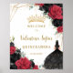 Poster Princesa Floral Negra e Vermelha Quinceañera Bem-v