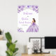 Este doce sinal de boas-vindas apresenta uma bela princesa em um vestido roxo empoeirado com arranjos florais. Isto é perfeito para uma doce festa de aniversário de dezesseis.