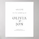 Printable Modern Black and White Wedding Welcome Sign. The White Space Edit Collection. Available digitally and printed. Welcome your guests in timeless style with this minimalist design for modern couples who love clean lines and effortless sophistication . This simple yet elegant layout suits any wedding theme or colour palette. Fully customisable. Update your names, date, and venue details easily. Simple black and white palette for a classic feel, wth lots of white space.