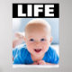 Esta é uma bela imagem pró-vida de um bebê sorridente com olhos azuis e a palavra LIFE. Todo texto e fontes podem ser modificados.