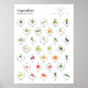 Poster infográfico que visualiza os valores nutricionais de 32 dos vegetais mais comuns, incluindo seu teor macronutriente (hidratos de carbono, proteínas e gorduras), teor de micronutrientes (minerais e vitaminas) e calorias.