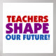 Professores, profissionais educacionais, e qualquer um que valorize uma boa educação apreciará este design de texto roxo, vermelho e azul que lê Professores Moldam Nosso Futuro em T-shirts, canecas, bolsas, cartões, autocolantes, correntes-chave, botões, autocolantes e outros itens.