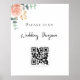 Um fundo branco chic. Decorados com ouro rosa, floral cor-de-rosa pincelado, flor (rosa) e folhas de eucalipto de cor aquosa verde, galhardetes, verde-verde e um cinturão de ouro falso. Personalize e adicione seu próprio código QR ao seu site com o programa de casamento.