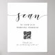 Sinal de mesa de código QR do programa de casamento personalizado com design minimalista preto e branco moderno.