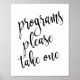 Um sinal de casamento elegante e moderno, apresenta o texto "programas por favor pegue um" em uma fonte de letra extrovertida, a textura da pincelada adiciona um sentimento espontâneo e divertido. A cor do fundo pode ser personalizada de acordo com as suas necessidades e preferências, por favor entre em contato se tiver algum pedido especial.