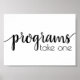 Sinalização moderna horizontal de "Programas: Por favor, pegue um" para chuveiro, festa ou recepção com um roteiro manuscrito divertido e casual. O design clássico inclui uma sobreposição de tipografia de citação manuscrita. A fonte encantadora com uma cor de fundo personalizável torna fácil se adequar a qualquer tema. Para outras cores ou produtos correspondentes, visite a loja JustFharryn Zazzle Todos os direitos reservados. #zazzlemade
