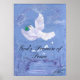 A linda pomba branca voa sobre o fundo azul do céu com galho de oliveira.
