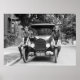 Foto antiga de mulheres jovens, de uniforme sentada na frente dos protetores do carro antigo, 1920.