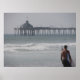 Um barqueiro se prepara para o mergulho na praia Imperial. O IB Pier criou o pano de fundo. Tirada em 2006. Há uma bandeira americana no topo do prédio no final do píer.