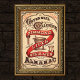 • Esta ilustração retocada de alta qualidade é uma reprodução vívida de um clássico pôster publicitário anterior a 1929. Esta obra de arte apresenta um almofariz e um pilão centrais envoltos em uma faixa de fita vermelha, promovendo um regulador hepático em um estilo de gravura ornamentado e detalhado em preto e branco.