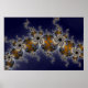 Fractal com muitas espirais em cores azul e amarela. A imagem é um zoom do famoso fractal Mandelbrot.