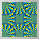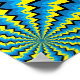 Rodas com padrões psicodélicos giram em direções opostas em uma imagem poster de abstrato da variedade de movimento ilusório.