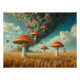 Psicodélico Paisley Mushroom Poster. Este poster retrata cogumelos psíquicos paisley, voando como um tornado sobre campos de grãos do Kansas, com pequenas sementes e esporos girando ao vento.