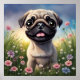 Poster Pug Flowers