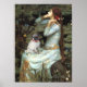 Ophelia (sentada) por John W. Waterhouse (1898), adaptada para incluir um cachorrinho Pug. A Waterhouse baseou esta pintura na Ofelia de Shakespeare.