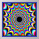Ao olhar para esta imagem no sentido dos ponteiros do relógio ou no sentido anti-horário, não só as cores começam a irradiar/pulsar/vibrar, como também o centro negro parece mover-se, dançar e bater - como um coração.