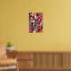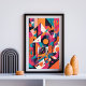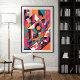 Uma explosão energética de formas geométricas ousadas e cores vivas. Esta peça de abstrato toca com camadas, linhas e simetria para criar um sentido dinâmico de ritmo e movimento. Matizes brilhantes de magenta, teal, laranja e preto numa estética digital-encontro-urbana, evocando a linguagem visual da modernidade e da inovação.