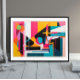 Esta peça capta o batimento cardíaco de uma paisagem urbana através de linhas arquitetônicas, ritmo assimétrico e contrastes ousados. A paleta — verde elétrico, marinho profundo, magenta e laranja escura — se entrelaça com um pêssego branco e cinza, formando formas arquitetônicas que colidem e se sobrepõem. Arcos e elementos curvos sutilmente suavizam a geometria de borda duro, sugerindo movimento através do espaço, como luzes de neon refletindo as estruturas da cidade à noite. Há um equilíbrio deliberado entre o caos e a ordem, um sentido de improvisação estruturada, fazer este trabalho se sinta como um mapa abstrato de uma metrópole moderna vista através de um caleidoscópio.