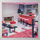Uma fotografia de um porão do século médio 20 decorado em preto, rosa e cinza moderno.