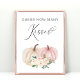 Sinal de jogo bonito para o chá de sua menina com "Adivinha Quantos Beijos" escrito como tipografia de cinza simples e um roteiro de na moda com um inchaço cardíaco e aquarelas de abóboras e flores de rosa pastel, coral e creme. Coloque um frasco cheio de beijos doces embaixo e peça aos seus hóspedes para adivinhar quantos estão no frasco. O vencedor será o convidado que se aproximar mais sem passar. Cartões de palpite correspondentes estão disponíveis na nossa Coleção de Chás de Bebê Floral Pumpkin Pumpkin Floral.