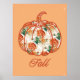 Poster in a design! featuring a pumpkin outline filled with a rich floral chrysanthemum pattern in warm orange and green hues, it captures the essence of autumn.