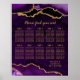 Welcome guests in style with this purple and gold agate marble wedding seating chart, designed to make a striking statement at your reception. Rich jewel-toned purples, organic stone-inspired patterns, and luminous gold accents create a refined and dramatic display ideal for fall or winter weddings. The deep amethyst palette paired with metallic gold detailing complements elegant, modern, and glamorous celebrations while enhancing your décor. This seating chart is formatted for 10 tables and can be fully customized to accommodate additional tables, guest counts, and layout preferences, ensuring a seamless fit for your wedding day.