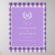 Poster Púrpura Gingham Monograma Crest Weding Bem-vindo
