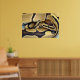 Uma píton preto e amarelo enrolado, saindo no topo.