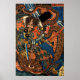 Wada Heita Tanenaga matando uma píton enorme ao empurrar sua espada para o fundo da sua cabeça por uma cachoeira. Arte clássica japonesa de Utagawa Kuniyoshi, médio do século XIX. #samurai, #japão, #japonês, #arte, #Utagawa, #monstros, #knight, #Rashomon, #dragon, #asiático