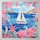 Esta poster quadrada ocular mostra um design vivo e artístico de veleiros no mar, cercado por brilhantes floresces tropicais cor-de-rosa e folhagem. As cores vibrantes e a composição dinâmica irão infundir o seu espaço com uma vibração alegre e pronta para férias. Traga a beleza dos trópicos para dentro! Mostrado no tamanho 16x16 quadrado com fosso de acasalamento e madeira para fins de ilustração. Várias opções de compra e tamanhos disponíveis com ou sem quadros e correspondências.