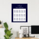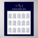 Gráfico de Assentos Simples, elegante, marinho azul e branco, personalizado com um monograma inicial, noiva e noiva. Modelo de Poster do Plano de Casamento. Assento para 150 convidados com 15 mesas. Altere as cores, o monograma, os nomes e adicione a mesa e os nomes de convidado para o plano de assentos selecionando "personalizá-lo" e usando o menu de edição fácil de usar. Precisa de ajuda? Entre em contato com luxuryweddinginvitations@gmail.com