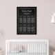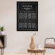 Uma tabela de assentos de oito mesas para casamento em forma de chic e tabuleiro casual. Personalize com seu nome de hóspede para fazer um quadro único para seu casamento. Entre em contato conosco para solicitar um gráfico personalizado para um número diferente de convidados.