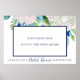 Este clássico poster de prop de foto de chá de panela de flor branca é perfeito para um chá de casamento de primavera. O elegante design floral apresenta marfim macio e rosas brancas, peonias e crisântemo com toques de flores azuis de cor azul-rosada e folhagem verde. Use este poster como um suporte divertido e personalizado para fotos. NOTA IMPORTANTE: este quadro de proteção de fotos requer um pouco de 'DIY'. Corte o quadrado branco no meio, depois reforce o poster para que ele possa se levantar sozinho.